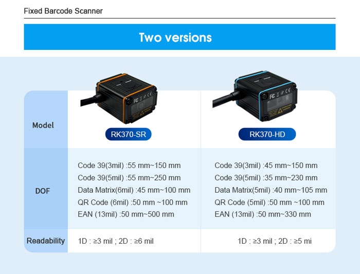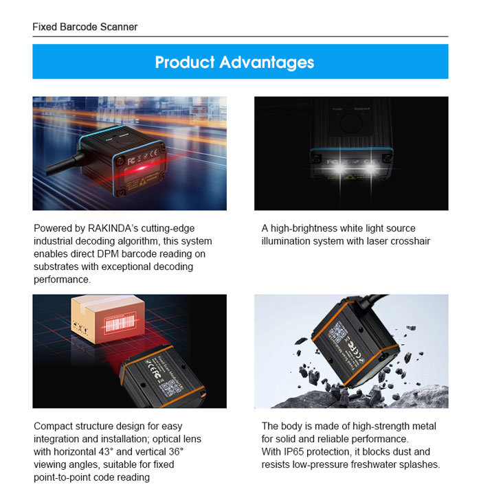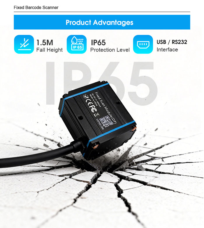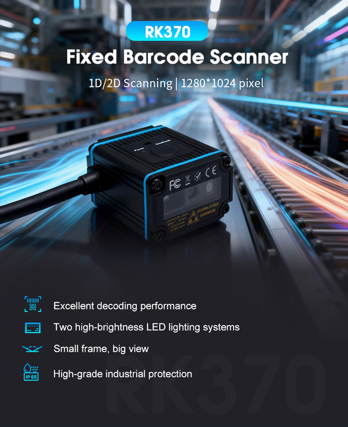 The RK370 IP65 Industrial DDC Fixed Mount Scanner is engineered for reliable 1D and 2D barcode reading in demanding settings. Featuring rugged IP65-rated housing, it excels in decoding low-contrast DPM codes directly marked on surfaces. With a wide 43°×36° field of view, dual high-brightness LED lighting, and laser crosshair alignment, it ensures precise scanning in automotive, electronics, and metalworking applications. Ideal for industrial barcode scanners, IP65 fixed scanner, and DPM code reader solutions.